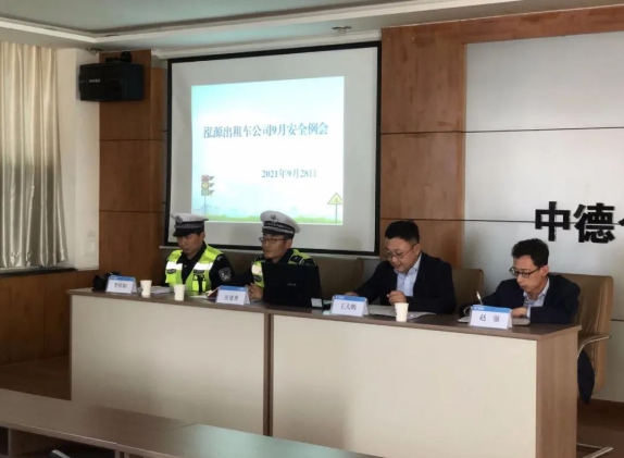2021-09-299月28日,泓源出租车公司在泓盛达3楼会议室召开“9月份安全例会暨国庆安全生产工作部署会”。会议邀请崆峒公安分局交巡警大队张建勇警官、李祥如警官进行安全驾驶知识宣讲及现场培训指导,泓源出租车公司全体员工和驾驶员共计60余人参加了会议。会议传达了省安委